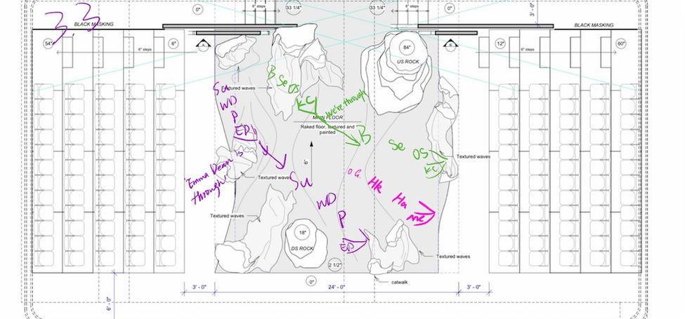 In this production of Men on Boats, a big gesture we decide to make is through putting audiences on the two side of the stage and get them racked. We want the audience to feel like sitting on the mountain ridge of Grand Canyon and looking down at the characters. We often break the fourth wall with character's lines and speak directly to the audience to thus provoke thoughts, making an historical event a comment on the modern society.